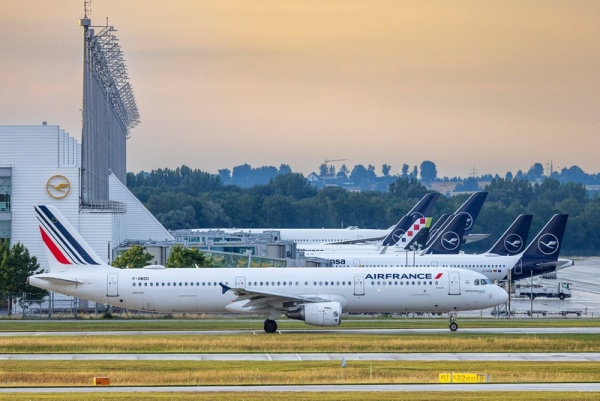 7月15日,德国奥伯丁市慕尼黑机场跑道,一架法航客机正在滑行。 IC Photo