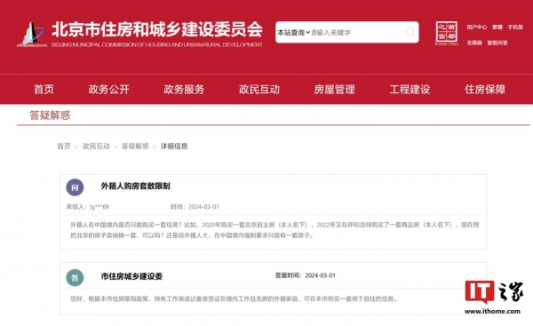 北京市住建委曾对"外籍人士购房"相关问题作出解释:"根据本市住房限购政策,持有工作类或记者类签证在境内工作且无房的外籍家庭,可在本市购买一套用于自住的住房"。