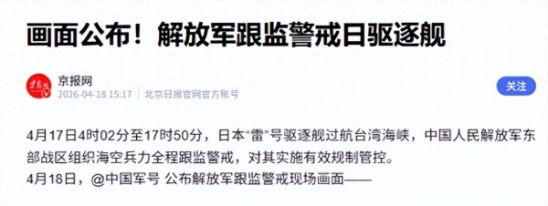 说实话,日舰这次的举动真够的异常的。4月17日那天,日本海上自卫队的"雷"号驱逐舰,硬是闯进了台湾海峡。