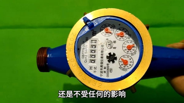 现在通过这个实验就能证明把磁铁不管放到水表的哪个部位,水表还属于正常转动。还是会正常计量,所以这种方法就是误导的。在水表上放磁铁,水表不会转或者转慢,这种方法根本不起任何的作用,大家别再去尝试了。磁铁对水表不起任何的作用,为什么不起作用?