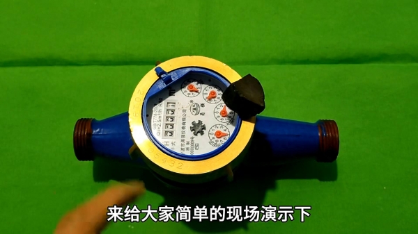 大家有没有听说过在水表上放一块磁铁水表就会不转,或者水表转的特别的慢。今天通过这个方法来给大家简单的现场演示下。现在水表上放了一块磁铁,看一下水表会不会受到磁铁的影响。