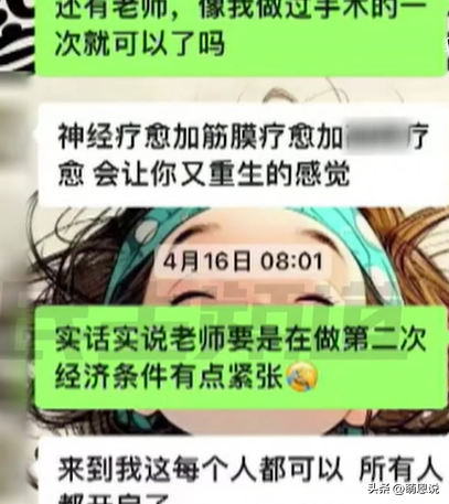 见到有记者参与进来,培训班负责人索性躲了起来,在记者的再三要求下,负责人还是露面了,随后负责人的一番话,彻底刷新了我们的三观。他解释道:我们做的这个是私密神经的一种疗愈,可以缓解,像一种情绪上的,睡眠上的也可以缓解,然后也可以缓解一些心理上的一些创伤,我们微信群里边告知我们的学员我们要开这样的一个课程