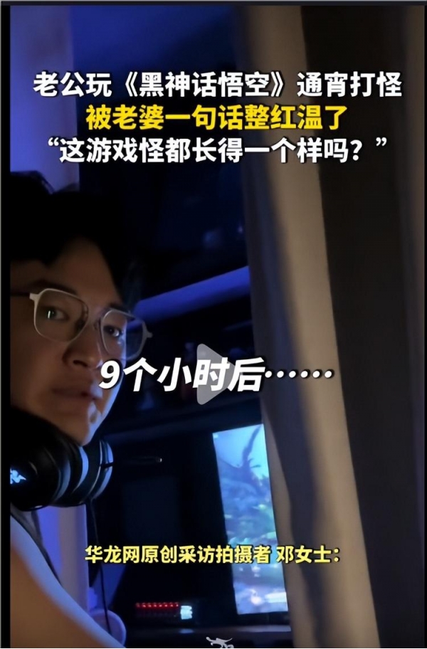 此时,刚刚睡醒的老婆并不知情,只是满脸疑问,"这游戏怪都一个样吗?"