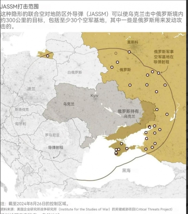 以乌克兰现有的军事策略和泽连斯基政府的强硬态度,极有可能迅速发动对俄攻势。JASSM 导弹作为美国新一代空射隐身巡航导弹,实力不容小觑。其基本型射程约 360 公里,增程型最大射程更是高达 926 公里,远超英国援助的风暴之影导弹,具备更强的突防能力和打击精度。