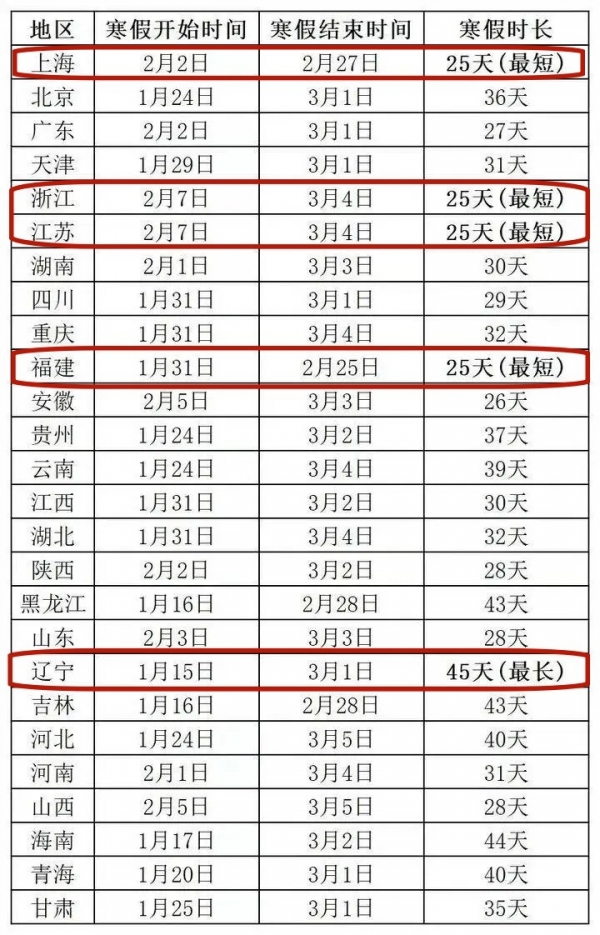 咱们先看看各地的具体放假时间,大家可以对照着参考(最终以学校通知为准):