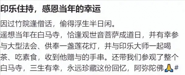 面对这位女香客晒出的合影,不少网友认为女子的行为是在为印乐法师引火上身。