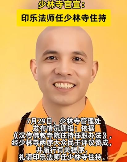 7月29日,印乐法师被礼请为少林寺的新住持。