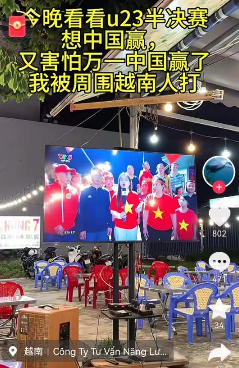 还有在越南的中国球迷,选择到宽敞的路边餐馆,边吃饭边和很多越南球迷一起看比赛,当中国队2-0领先后,他们立即发视频自我调侃:"要不要赶紧撤,要不等会会不会挨打?"这都是自黑的说法,越南人在公开场合还是很文明、礼貌的。