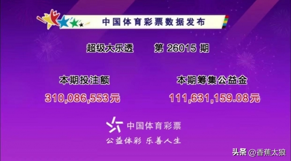 彩韵流芳,公益播爱,大乐透梦初圆。奖池波涌,善念映长天。汇聚涓流成海,助贫弱、暖意绵绵。扶残幼,兴文育教,德泽润山川。本期大乐透的销量为3.1 亿,筹集社会公益金 1.11亿。