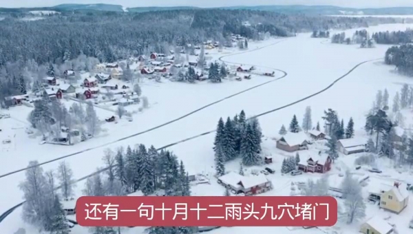 ·再看雨雪天的情况。北方的农谚说:十月十二雨雪飘,三九四九雪三层。意思是如果这天飘起雨雪,到了一年中最冷的三九四九天,雪会下的特别大,积雪能堆到三层后,江南一带则有十月十二雨淋淋,寒冬腊月雨雪多的说法。和北方的农谚异曲同工,都是说这天降雨的话,整个寒冬腊月都会被雨雪笼罩,是个实打实的冷冬。
