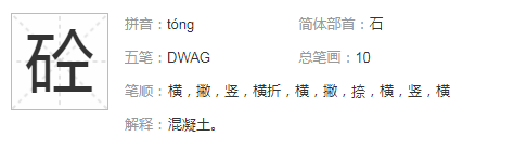 再来看看砼的读音,正好与法文BE-TON、德国Be-ton、俄文BE-TOH混凝土一词的发音基本相同,感兴趣的朋友可查一下。