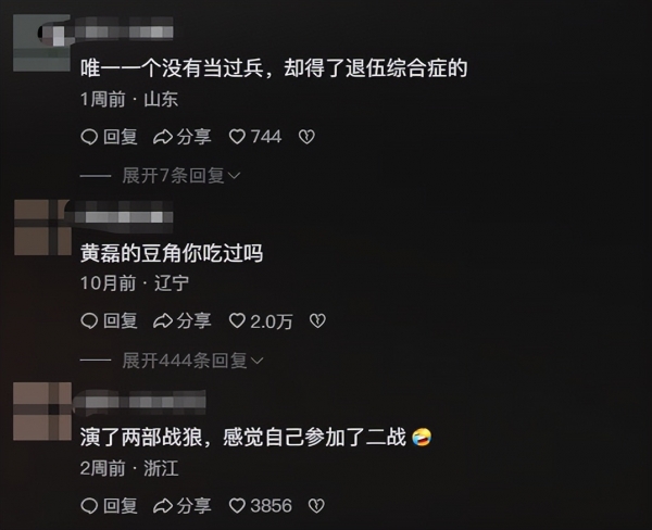 "吴京是唯一一个没有参加过战争却得了战争后遗症的人。""就是拍了个战狼,也不知道他在嘚瑟个什么劲儿。"