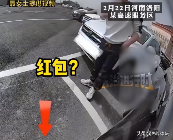 他确认没人注意,又用脚挪了挪红包,像试探,像掩饰,像是踩到东西。然后一个弯腰,红包进了口袋,转身走人,上车,黑车发动,离开服务区,动作很快。