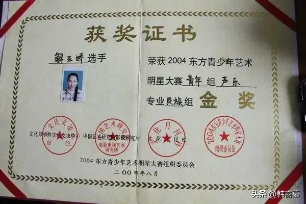 2004年,解亚娇获得全国声乐歌手大奖赛民族唱法专业组金奖,她也一举成名,在乐坛有了一些名气。
