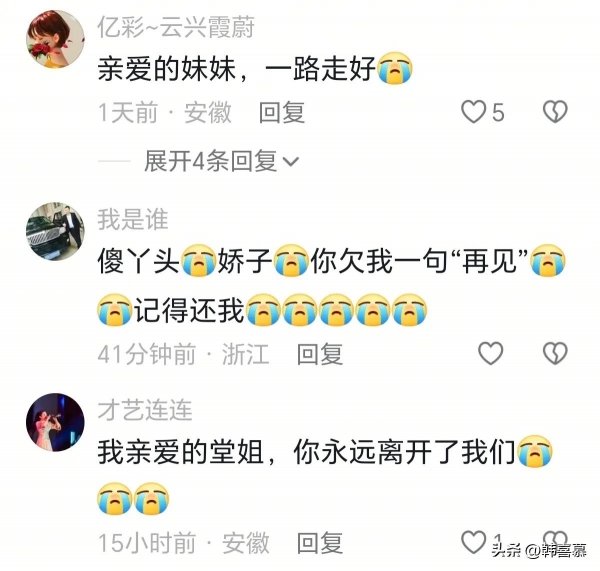 解亚娇亲人纷纷在评论中留言称,妹妹一路走好,大家都在哀悼她,这也证实了解亚娇去世的消息。