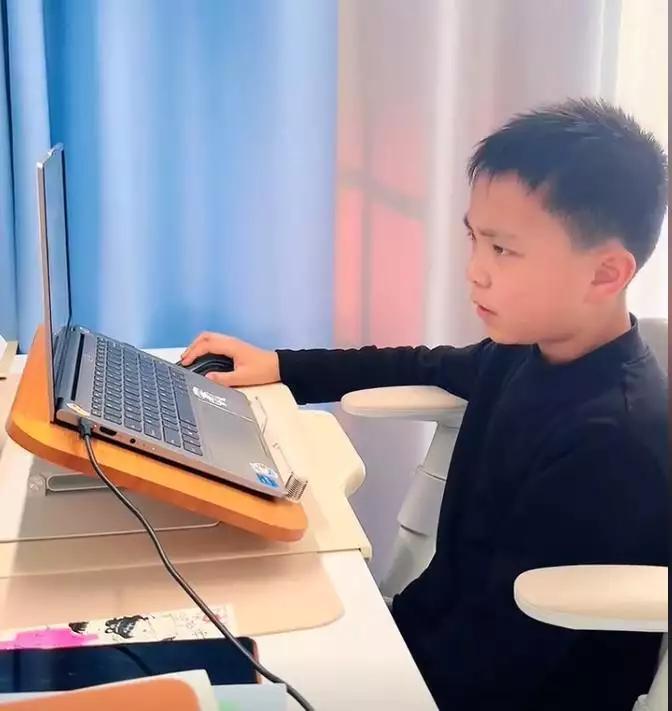 在他学习时,他的精气神和小时候一样足足的,显得十分专注。