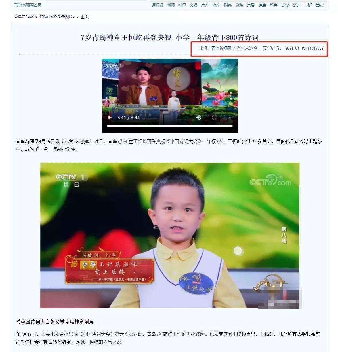 这次的亮相,让萌娃王恒屹成为了家喻户晓的诗词神童。