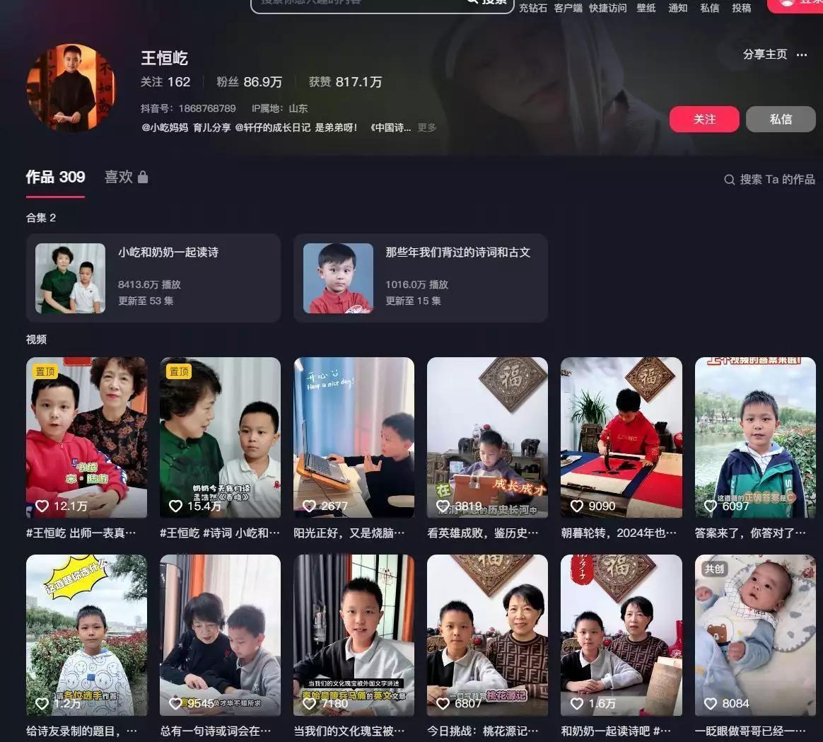 认为培养王恒屹背古诗,参加综艺,只是父母刻意营销,用来"捞金"的手段。