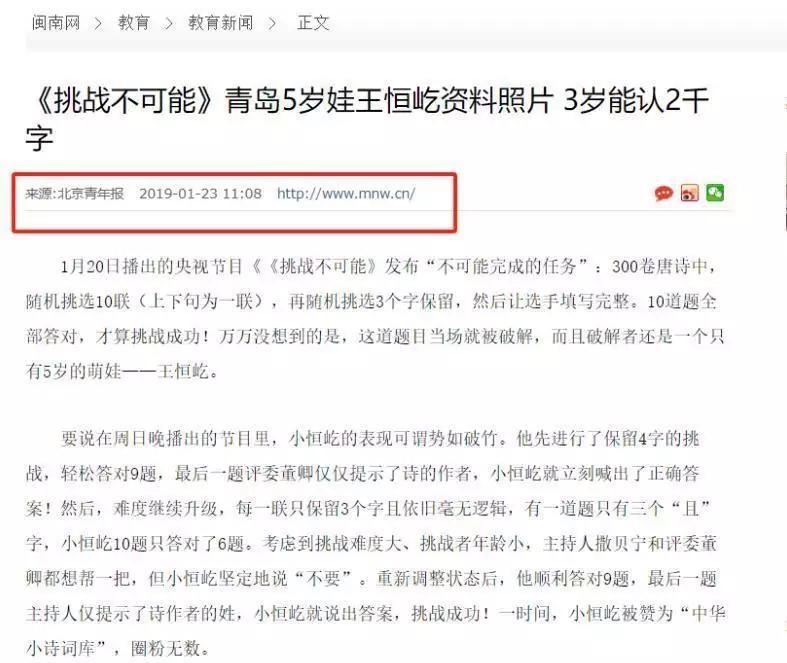 随后竟然发现,王恒屹很快就能理解并背诵,何霞兴奋之余,教了孩子两千多个汉字。