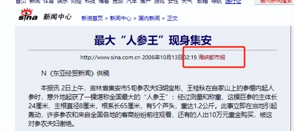 2006年,东亚经贸新闻发布了一则消息,消息中声称在吉林省出现了一棵重量约1.2公斤的"人参王"!