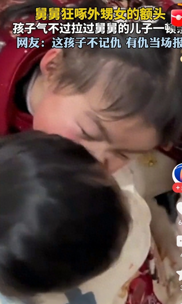 不得不说,这位舅舅的爱,属实是有点"窒息"了,活脱脱像只执着的啄木鸟,把外甥女亲到落泪,最后这份浓烈的爱意,反倒让自家娃替自己扛下了所有。老话常说"童言无忌,童心最真",孩子的世界就是这么简单纯粹,开心了就笑,委屈了就哭,就连"报仇"都透着天真烂漫,没有半点恶意,只是最直白的情绪表达。