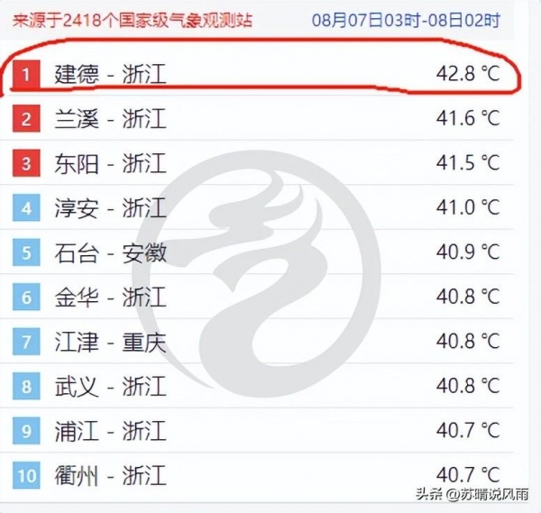 特别是浙江的建德飙到了42.8℃,破了8月份的历史新高,那热实属罕见!海南的屯昌连续两天刷新了8月的最高温记录,这里的朋友也是不容易啊。