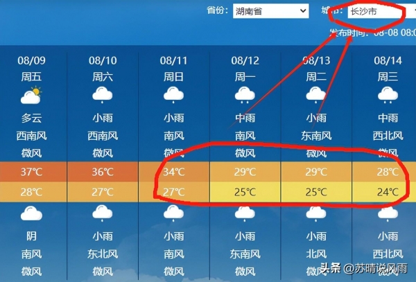 长沙、南昌在12号告别高温,合肥、南京要等到13号,上海、杭州的朋友们还得再忍忍,得等到本月中旬气温才能降下来。