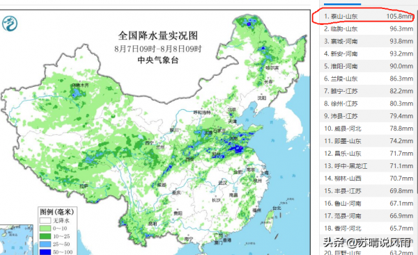 豫中、豫北、山东中部和南部,再加上苏北多地雨量都超过了100毫米,说是大暴雨都不为过。