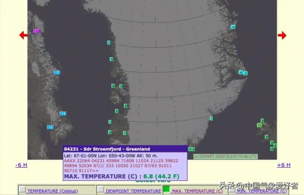 这几天,欧美西风带剧烈振荡,一方面极端强的暖空气袭击墨西哥、格陵兰,墨西哥出现36度高温,偏高15度左右;而格陵兰冰原出现了罕见的化冻级温暖,12月21日冬至这天,格陵兰岛有20多个气象站气温超过0度,最高达到6.8度,0度冰冻线直达极夜区内北纬74度的位置,偏高程度达到了25度左右。