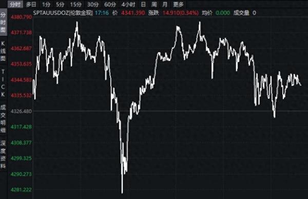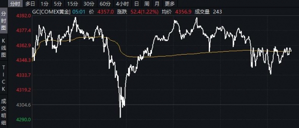 10月17日,国际金价上演过山车行情,走出"V"形曲线。在现货黄金、COMEX黄金分别突破4380.79美元/盎司、4392美元/盎司后,一路下跌,随后又上演"V"形反转。