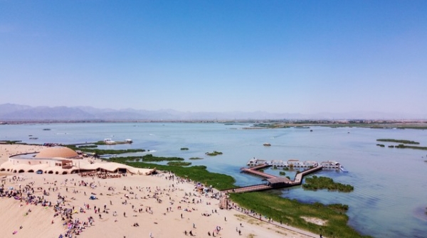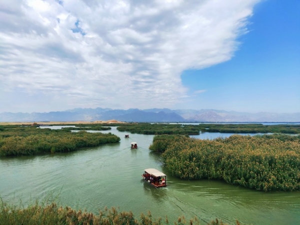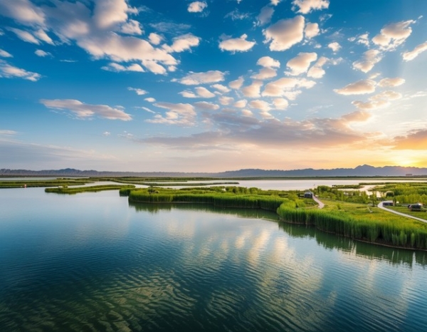 半湖翠波半漠金沙,45平方公里水域与22平方公里沙漠在此相拥,成就"中国十大魅力湿地"的奇观。