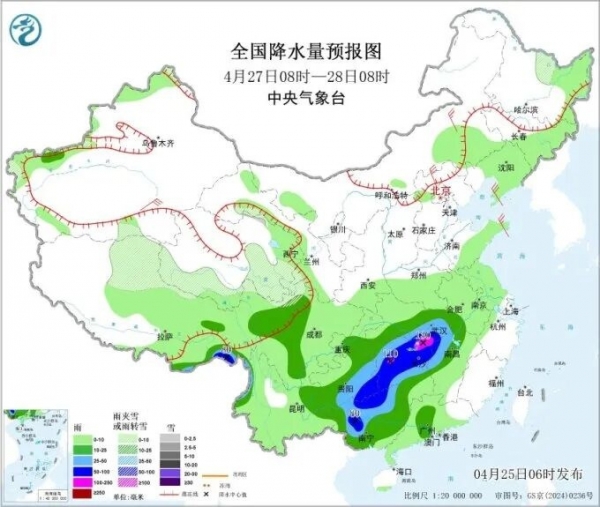 27日至28日为本轮强降雨的主要时段,贵州、湖南、湖北、江西、广西、广东、福建、浙江等地将有大到暴雨、局地大暴雨。