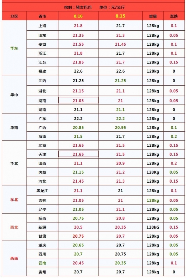 因此,基于猪价重心上移,市场多空博弈加剧,猪价或将维持高位震荡的走势,受屠企调价收猪,2024年8月16日,外三元生猪报价在21.19元/公斤,上涨0.03元,后市关注集团猪企出栏节奏的变化!