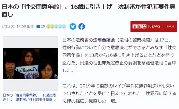 上周五2月17日,日本法务省的法制审议会提案,拟将性同意年龄从13岁提高到16岁。