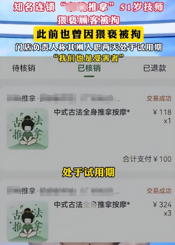这位 20 多岁的女孩独自来到一家推拿店,想着做个按摩缓解一下身体的疲惫,她在店内完成消费后,便被安排到包间接受按摩服务,全程都有清晰的消费记录可以佐证。