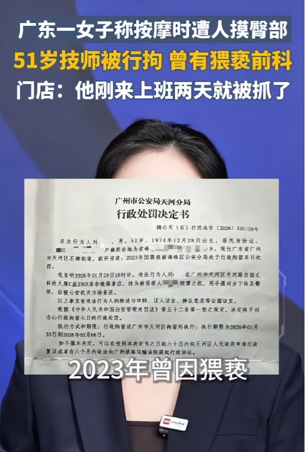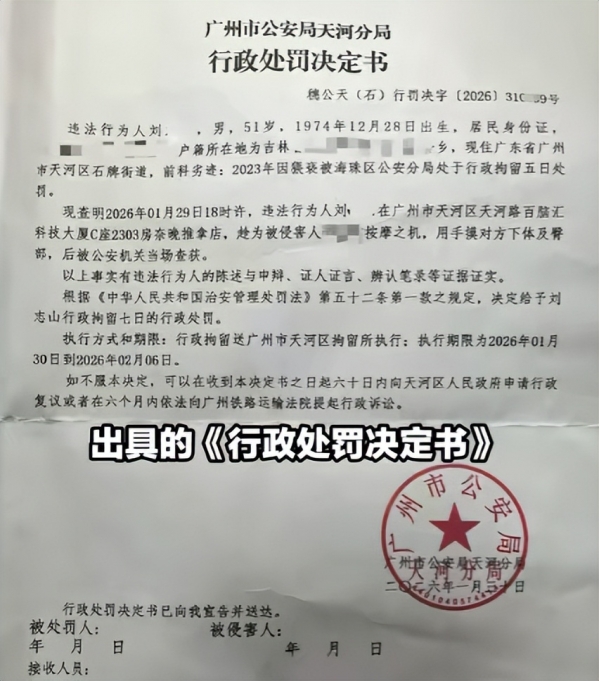 目前 51 岁的刘季已经因猥亵他人被依法行政拘留 7 日,为自己的违法行为付出了应有的代价。