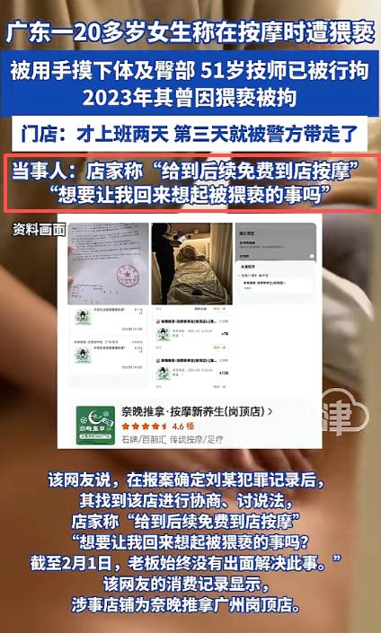 门店提出的免费按摩补偿,不仅没有任何实际意义,反而会让她再次回忆起这段糟糕的经历,造成二次伤害。