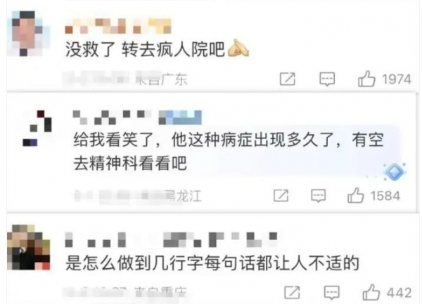 难怪网友认为其有精神病,纷纷直言:没救额,转去疯人院吧。
