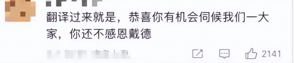 网友翻译过来就是"恭喜你有机会伺候我们一大家,还不感恩戴德?"