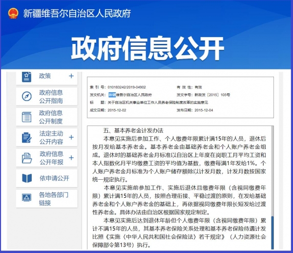 新疆过渡性养老金过渡系数为1.3%。