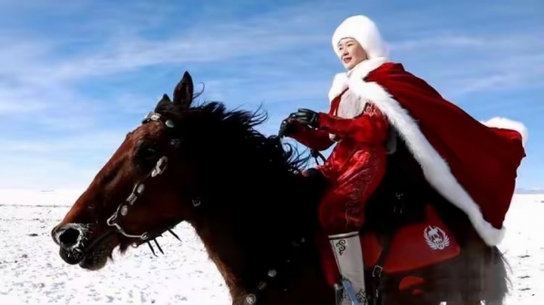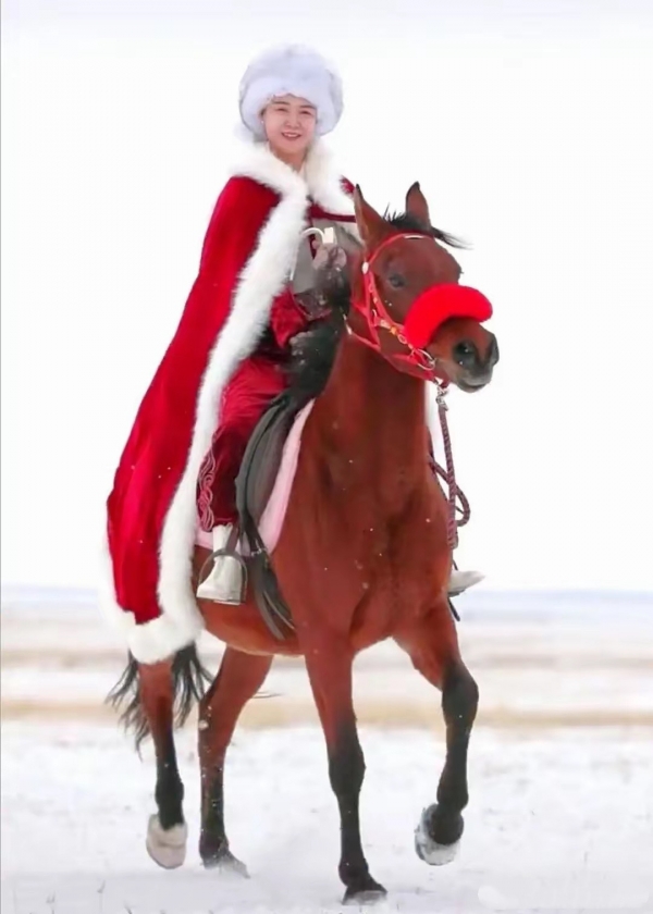 2020年还在任职新疆昭苏县副县长的时候,她穿着红衣、披红色斗篷,在新疆雪原策马扬鞭,为当地旅游代言。