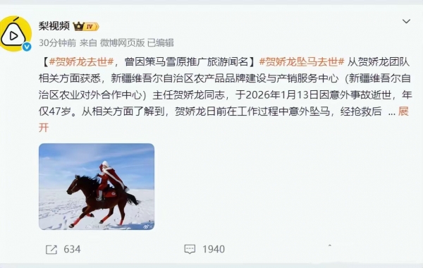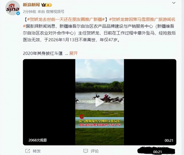 47岁的"网红干部"贺娇龙,意外坠马、经抢救后医治无效不幸离世。不敢想象,47岁的年纪、那么美好的年华,生命就因为一场意外戛然而止。