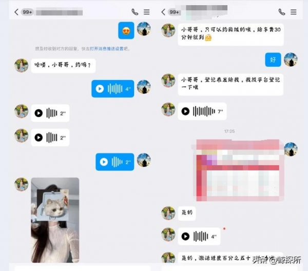 刚开始的时候,他们会主动联系你,然后给你发一些比较大尺度的照片,或者和你聊一些比较大尺度的话题。