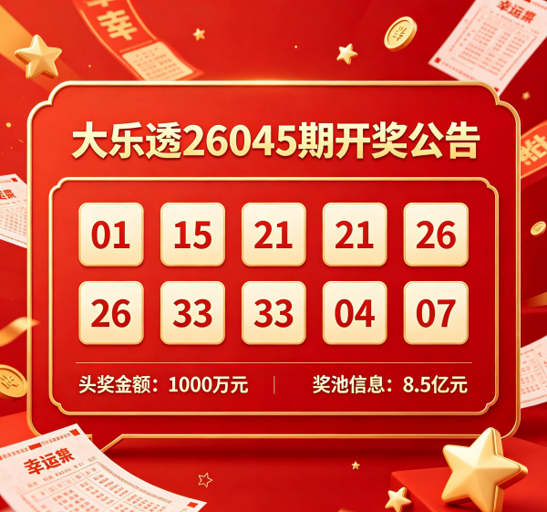 今晚(4月27日),超级大乐透第26045期开奖结果正式揭晓!本期开奖采用第2套摇奖球,前区开出号码:01、15、21、26、33,后区开出号码:04、07,全国销售总额达399,445,116元,为奖池注入了新活力。