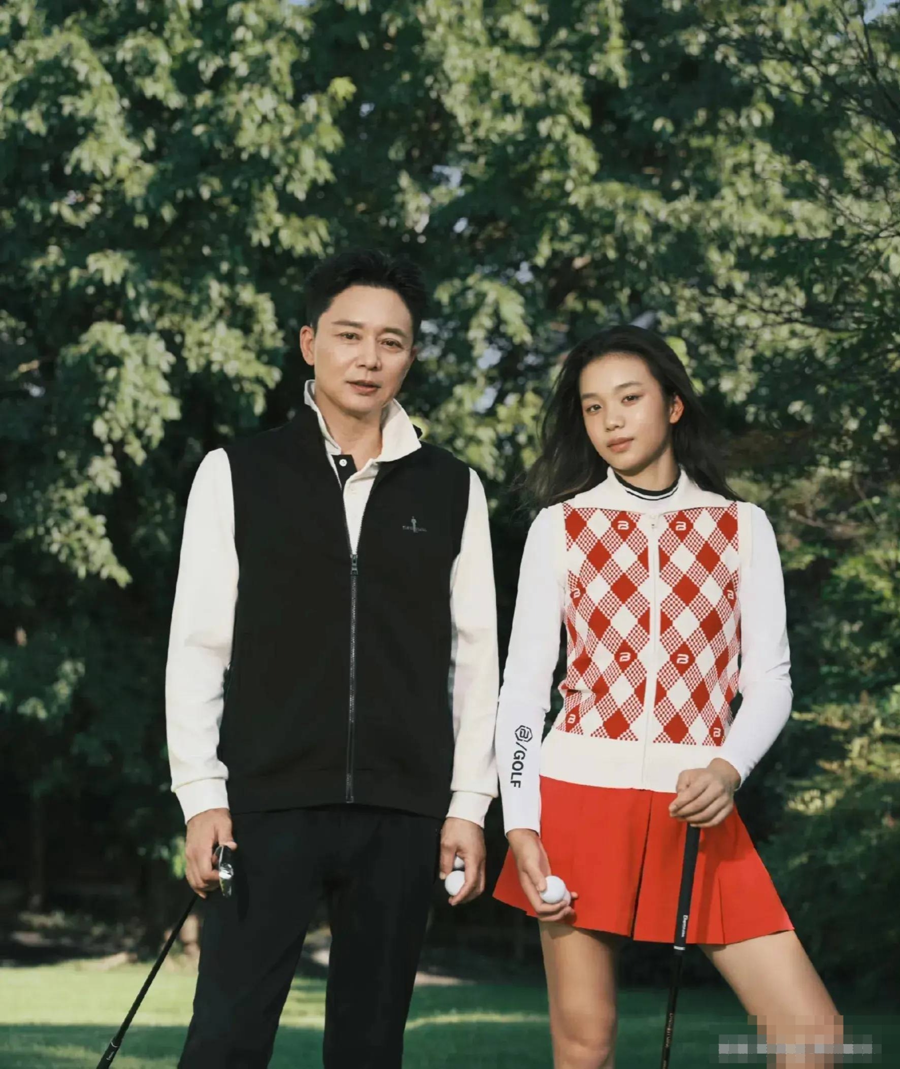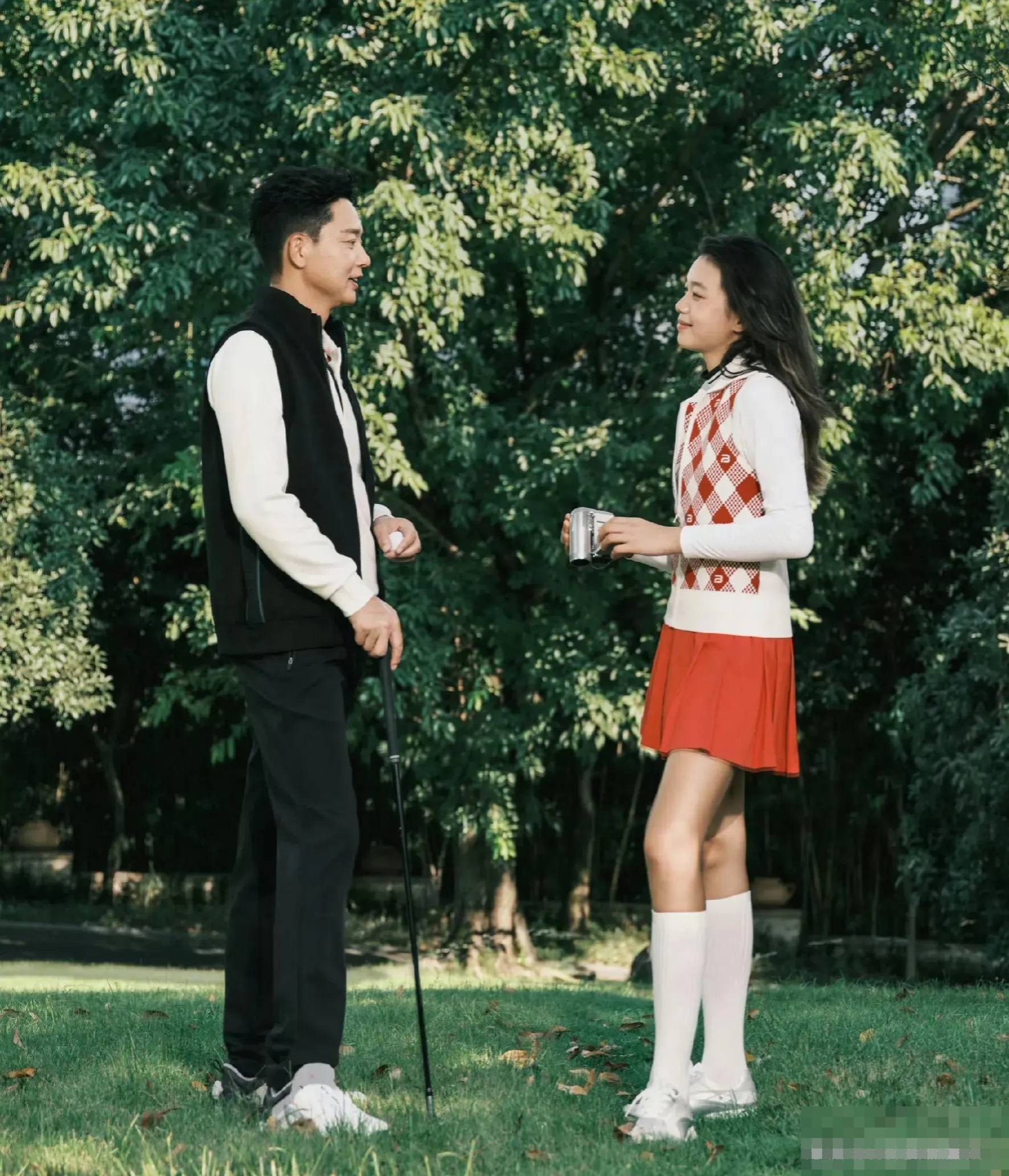 刘奕君女儿刘悦淇特别热爱高尔夫这项运动,父女俩手拿高尔夫球杆的画面,也特别的有爱,有画面感。
