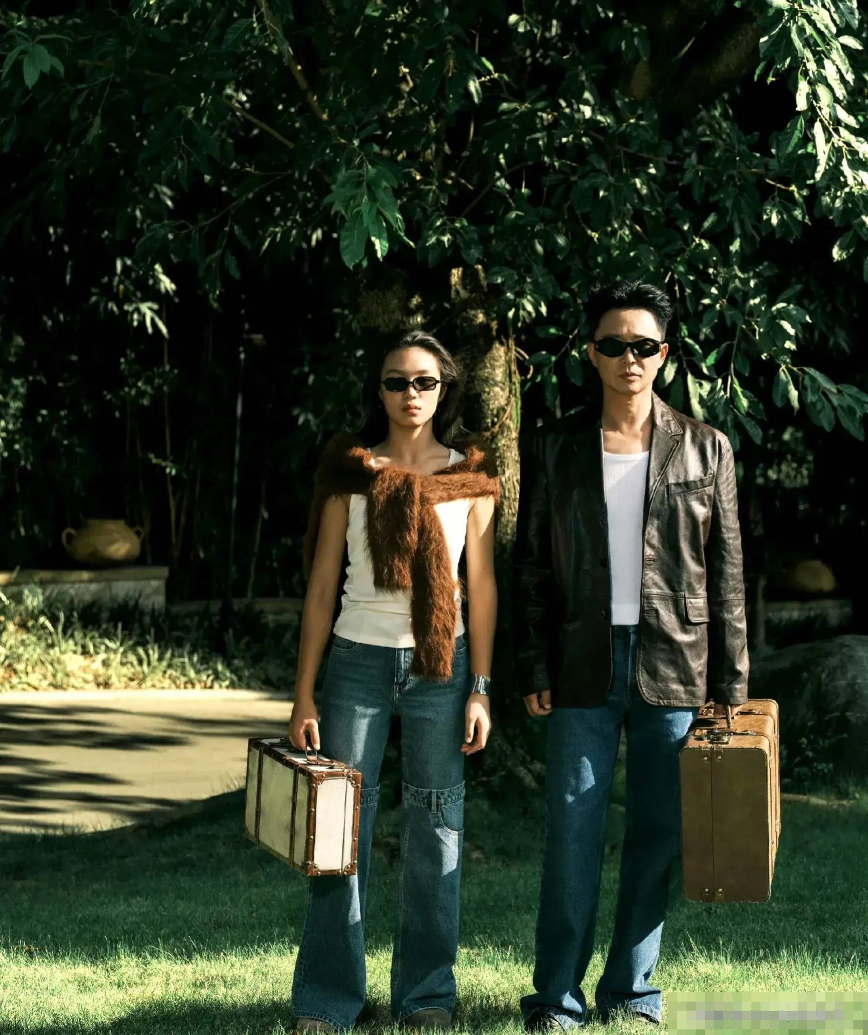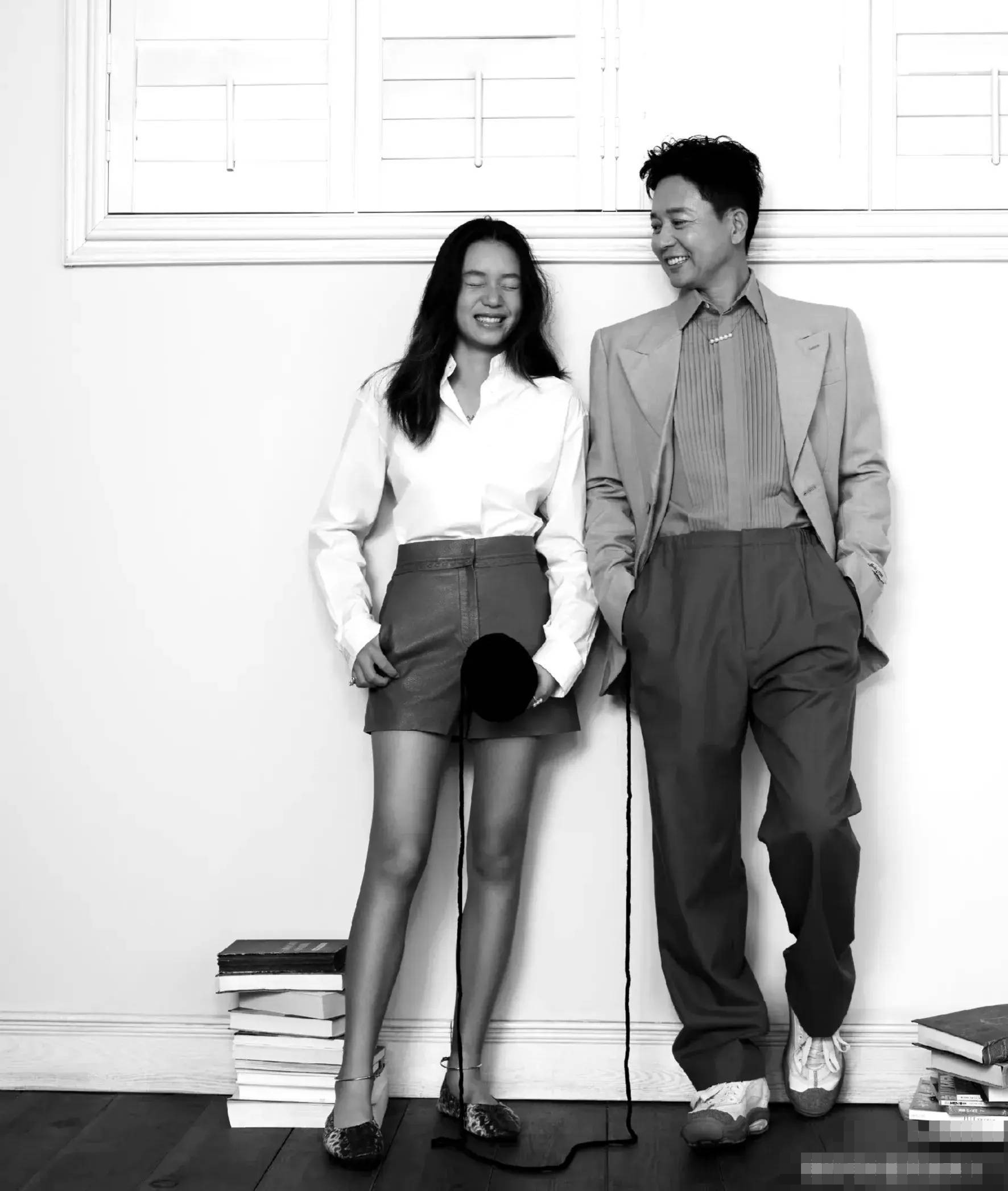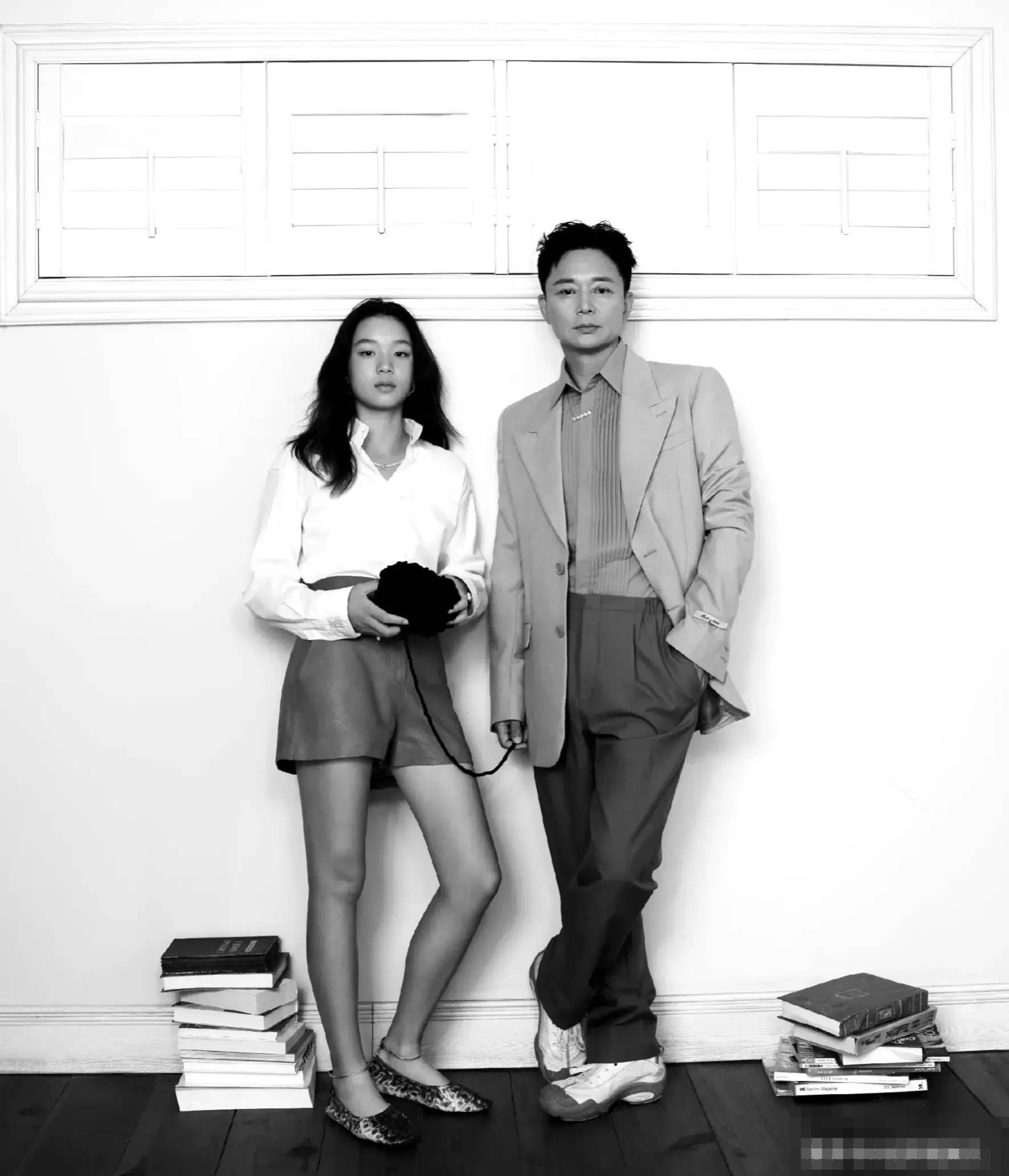 刘奕君与女儿刘悦淇并排坐在一起,一起看向镜头的样子,酷感十足,父女俩不苟言笑,一本正经,满满的出片感。