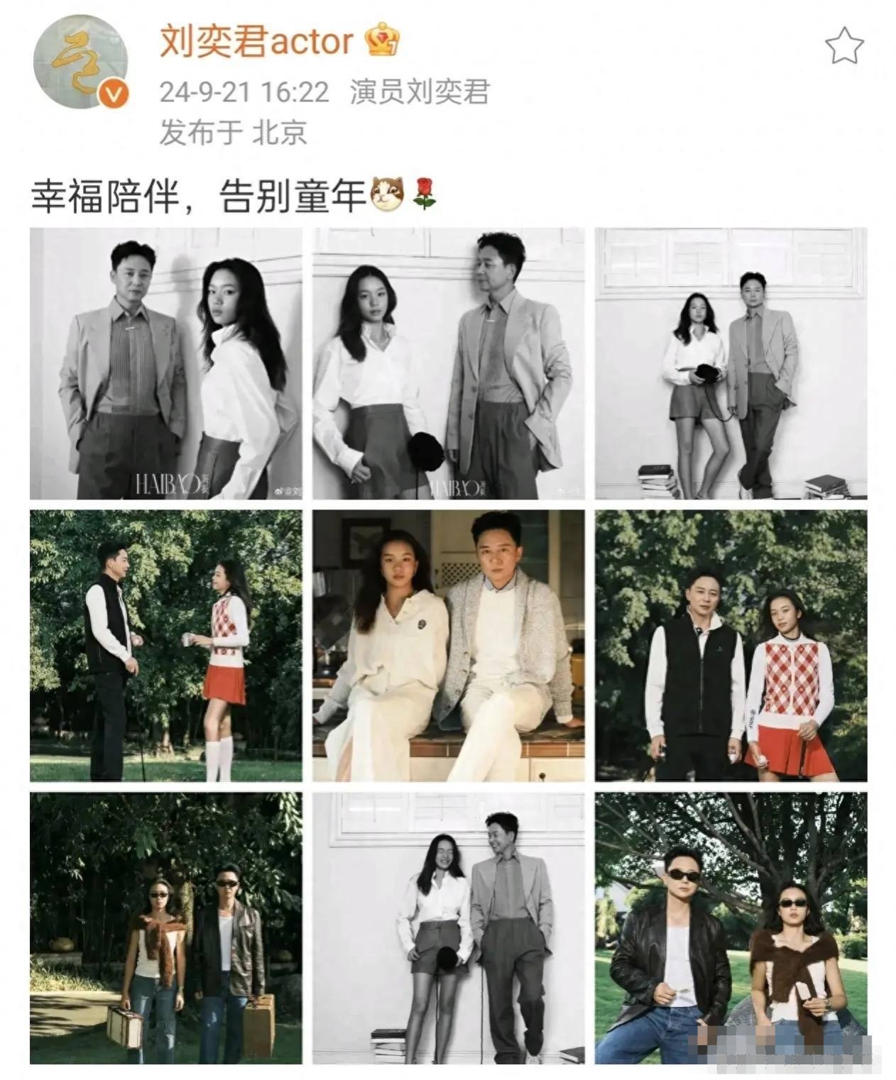 刘奕君发文写道:"幸福陪伴,告别童年。"