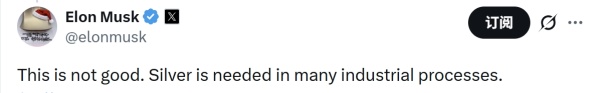 据福克斯新闻网29日报道,马斯克就白银价格暴涨发出警告。他在社交平台X上回复了一则帖子,该帖子指出,自明年1月1日起,中国将要求企业出口白银必须取得政府许可证。马斯克对此回复道,"这不好。许多工业生产流程都离不开白银。"