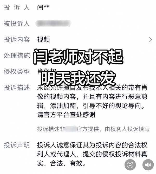 更愚蠢的是,面对质疑,闫学晶没有反思,反而选择硬刚到底,她嘲讽质疑者是"酸黄瓜",甚至关闭评论区、批量举报吐槽视频,举报理由从侵犯肖像权到恶意剪辑五花八门。