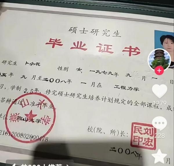 女硕士卜某现年45岁,家是晋中市榆次区的,2008年硕士研究生毕业,就读于燕山大学,工程力学。燕山大学的机器相关专业,全国都是数得着的,就2025年高考录取分数,河北省的考生想要上该大学的该专业,都要600分左右。